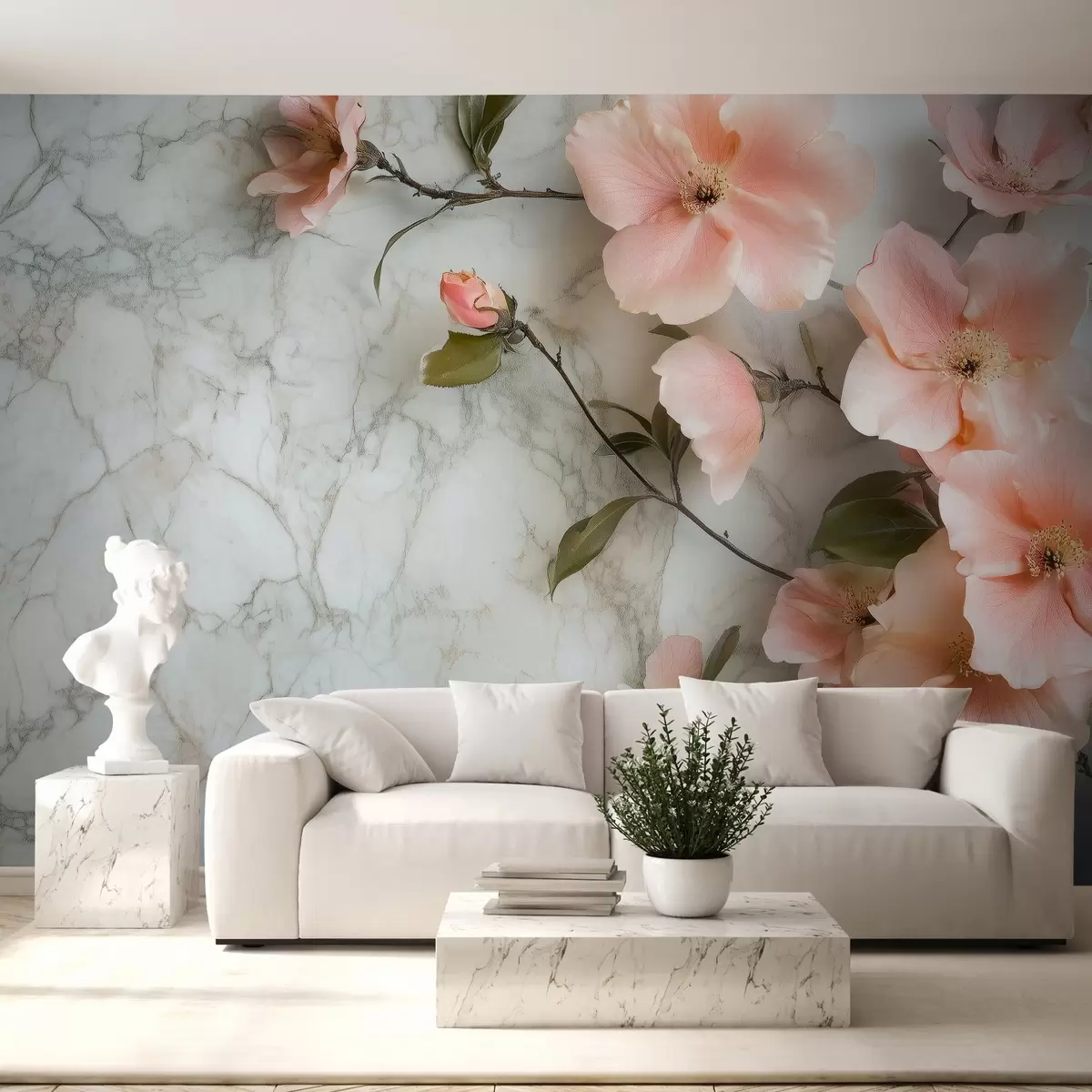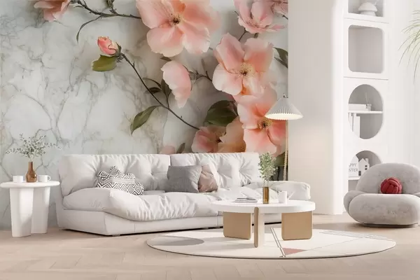 Fototapet Delikata blommor på bakgrund av marmorimitation Nr. w02291