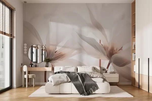 Fototapet Beige blommor på ljus bakgrund Nr. w02295