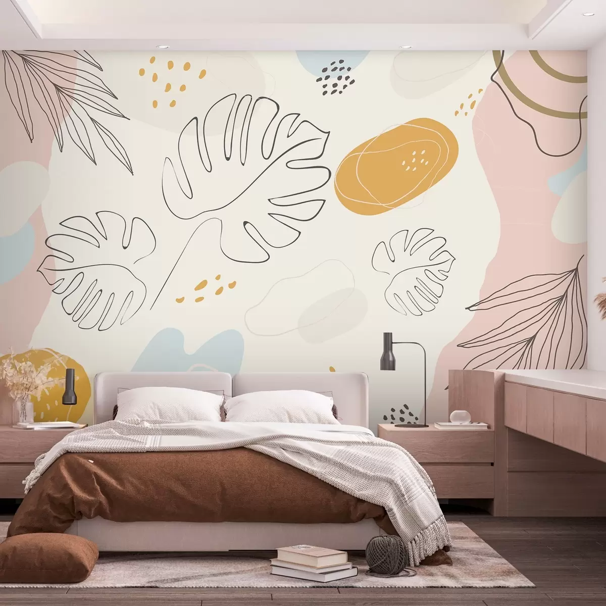 Fototapet Boho-design med blad och figurer i pastellfärger Nr. w02322