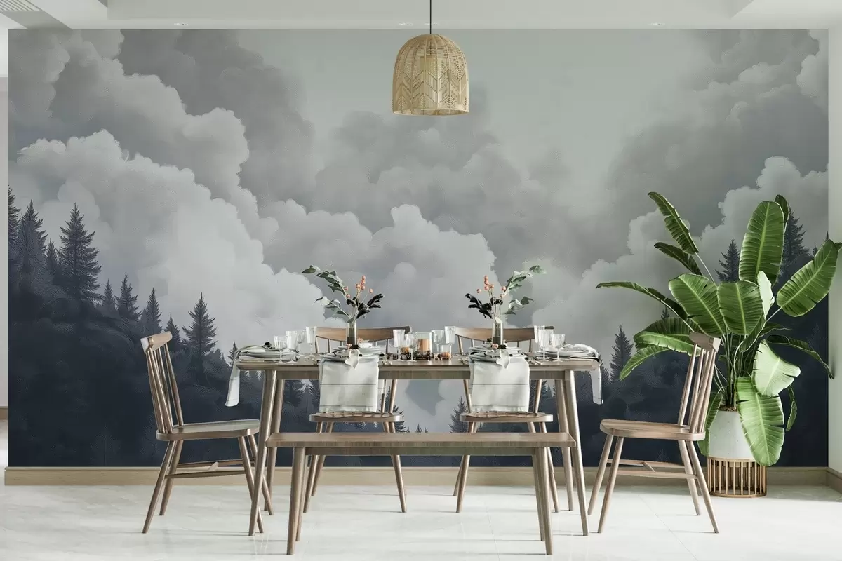 Fototapet Målade tjocka moln över skogen i oljestil Nr. w02411