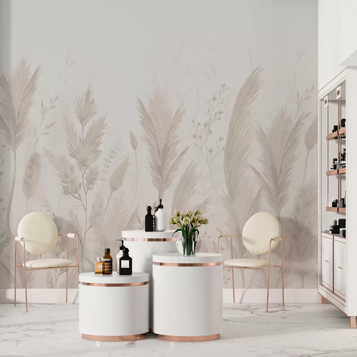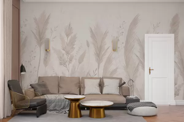 Fototapet Delikata vildblommor och spikelets i mjuka pastellfärger Nr. w02446