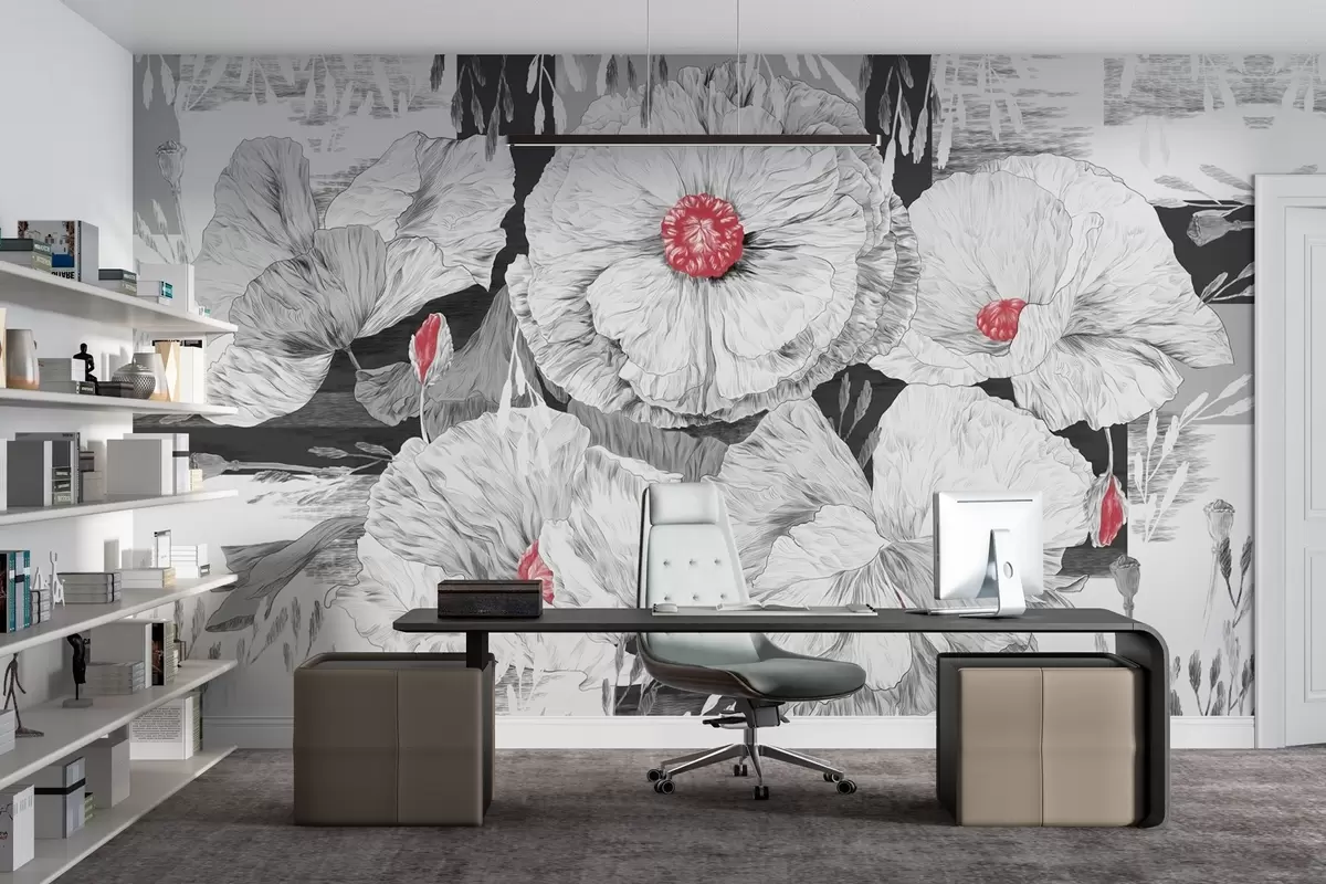 Fototapet Monokroma blommor i mjuk elegans Nr. w02477