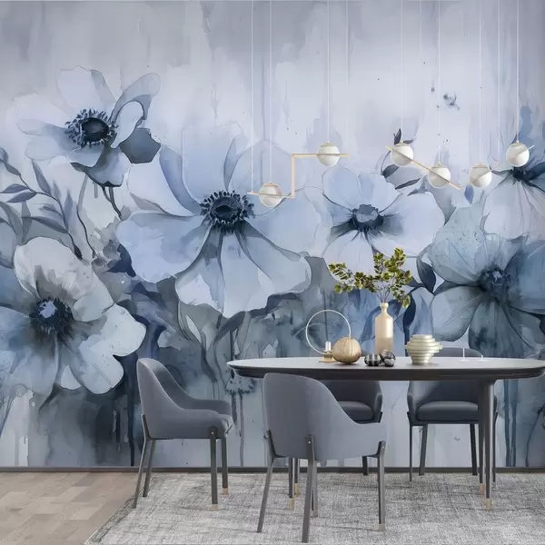 Fototapet Rustika blommor, teckning i akvarellstil, blå färger Nr. w02487v1