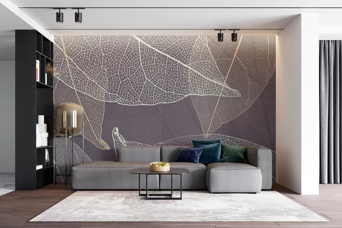 Fototapet närbild av blad med ådror i lila-grå toner Nr. w02520v3