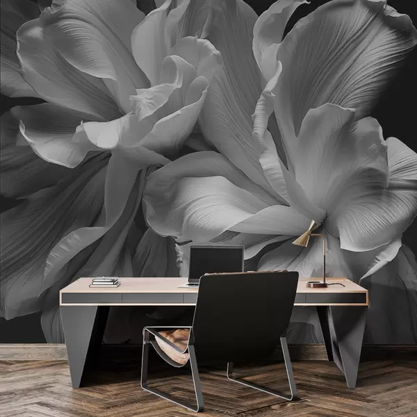 Fototapet Stora blomblad i svartvitt Nr. w02554