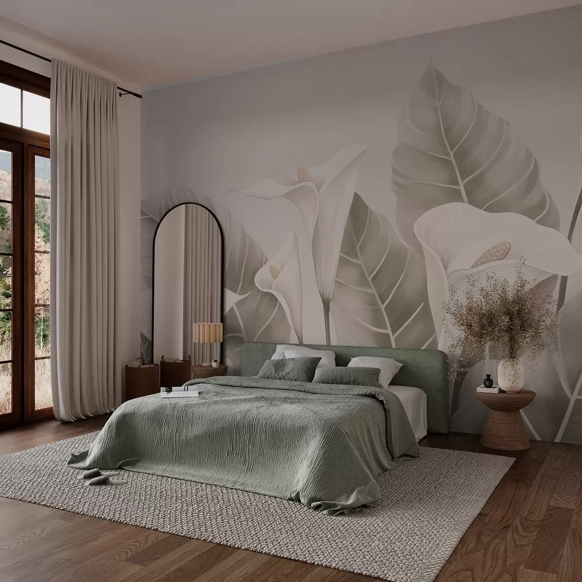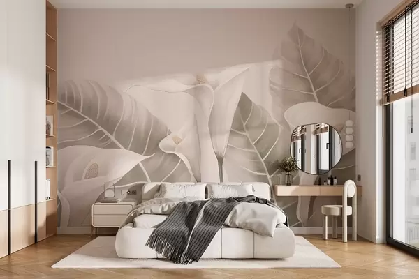 Fototapet calla liljor på en bakgrund av löv Nr. w02568
