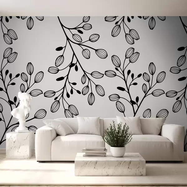 Fototapet målade kvistar på en grå bakgrund Nr. w02665v1