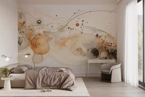 Fototapet Abstrakt tuschkonst, flytande stil, beige färgpalett Nr. w02744