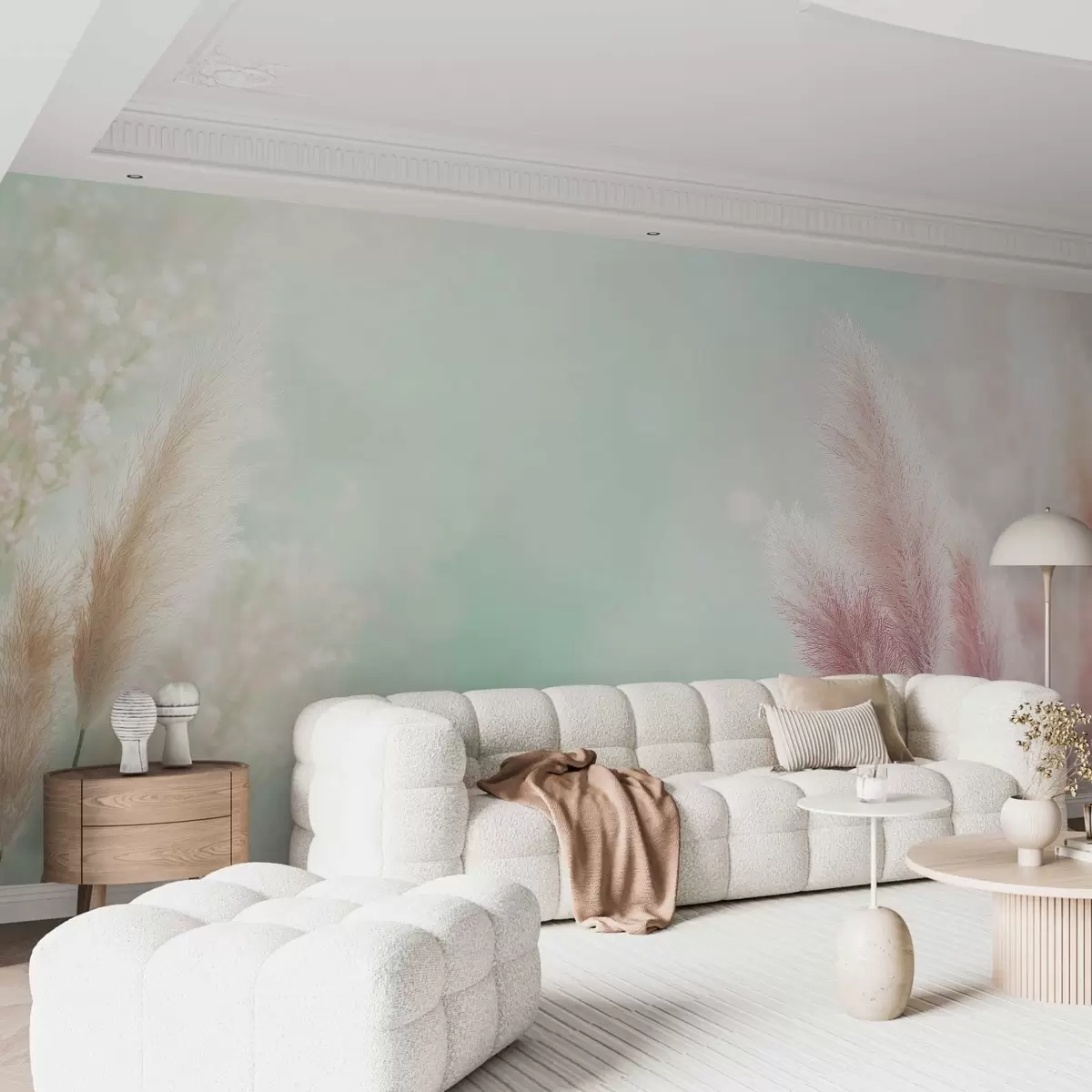 Fototapet pampasgräs på en skir turkos bakgrund Nr. w02766