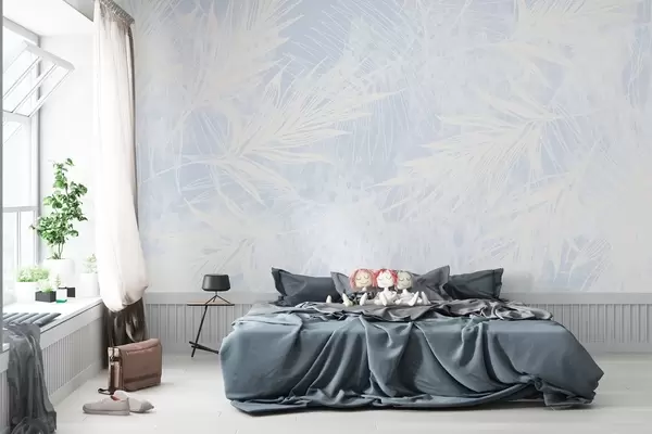 Fototapet Vita silhuetter av löv på en texturerad bakgrund Nr. w02896v1