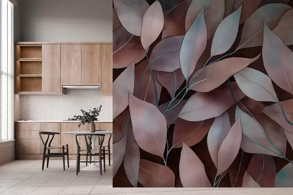Fototapet Eukalyptusblad, akvarellstil, blommönster, bruna färger Nr. w02931v1