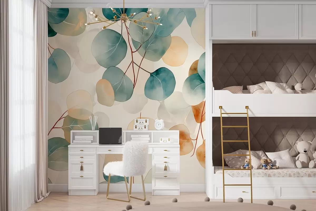 Fototapet Akvarellstil eukalyptusritning, mjuka pastellfärger, blommig Nr. w02938