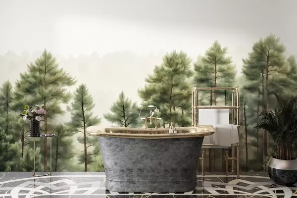 Fototapet Skog med tallar, teckning i oljestil, natur Nr. w02942