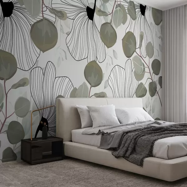 Fototapet Sammansättning av vita blommor och gröna blad Nr. w02955