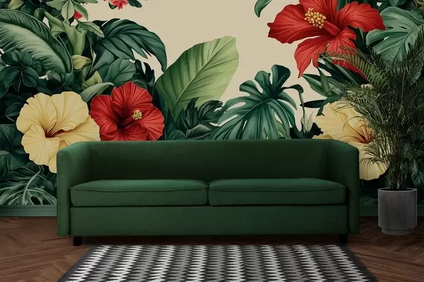 Fototapet Tropisk trädgård med blommor Nr. w03021
