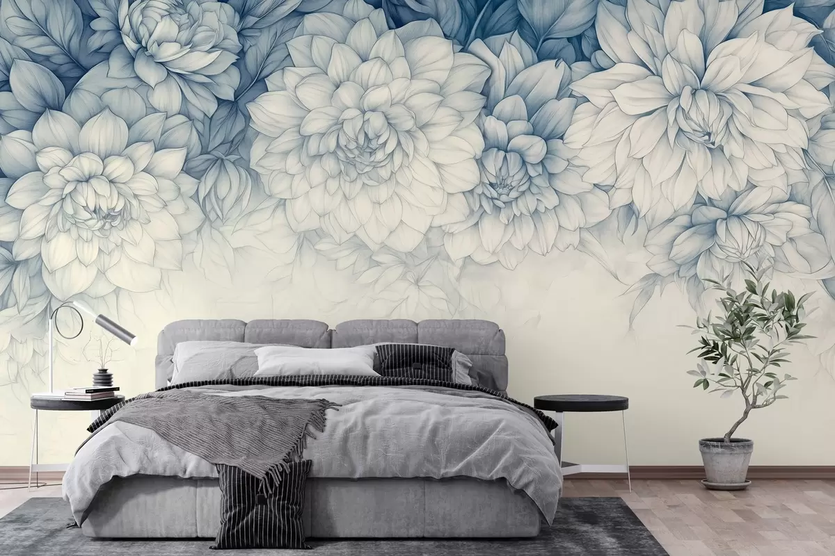 Fototapet frodiga monokroma krysantemum hängande från toppen Nr. w03110