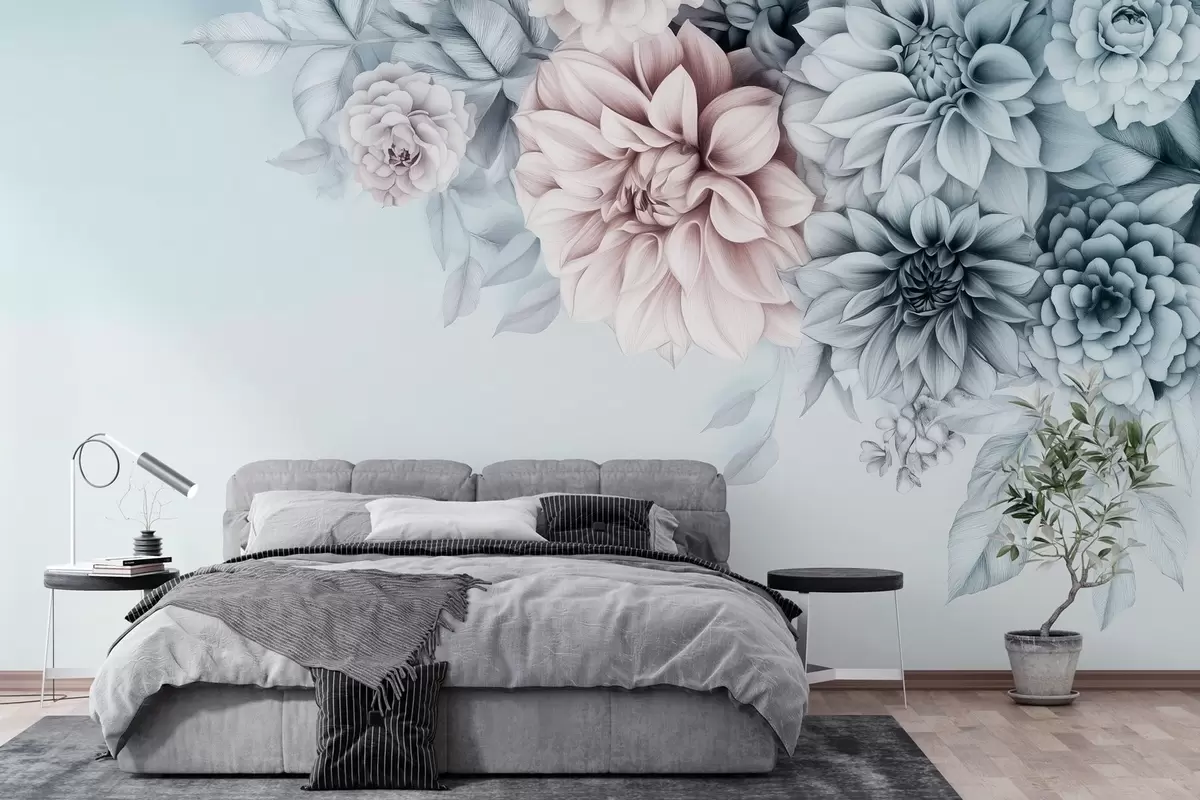 Fototapet en bukett krysantemum mot en gråblå bakgrund Nr. w03118
