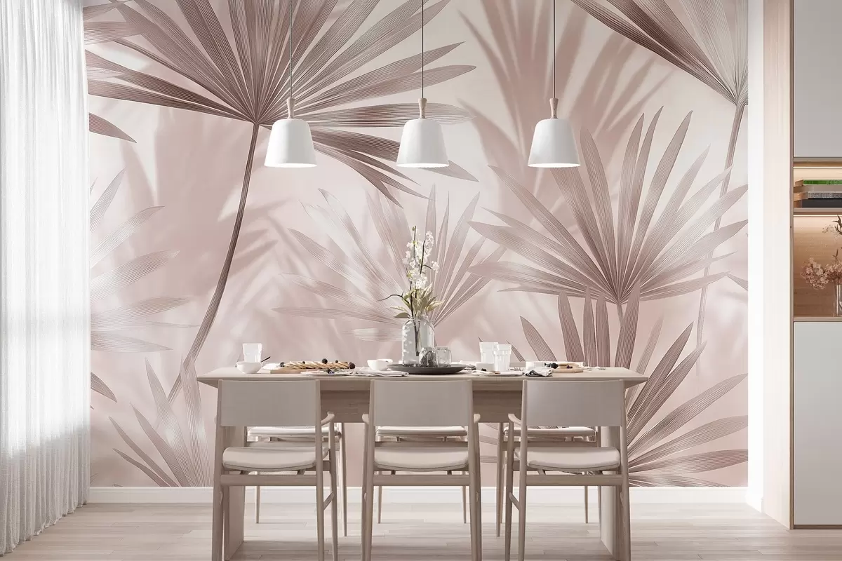 Fototapet Palmblad, blommigt mönster, minimalism, tropiskt, beige färger Nr. w03152v3