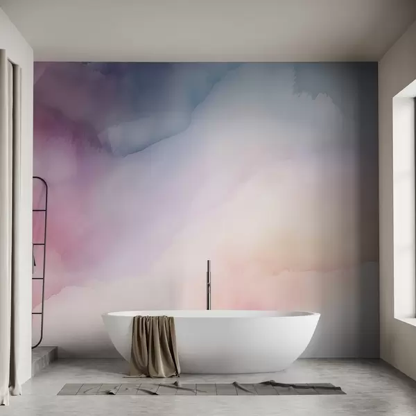 Fototapet Abstrakt akvarellgradient i mjuka pastellfärger av rosa, blått och persika Nr. w03160