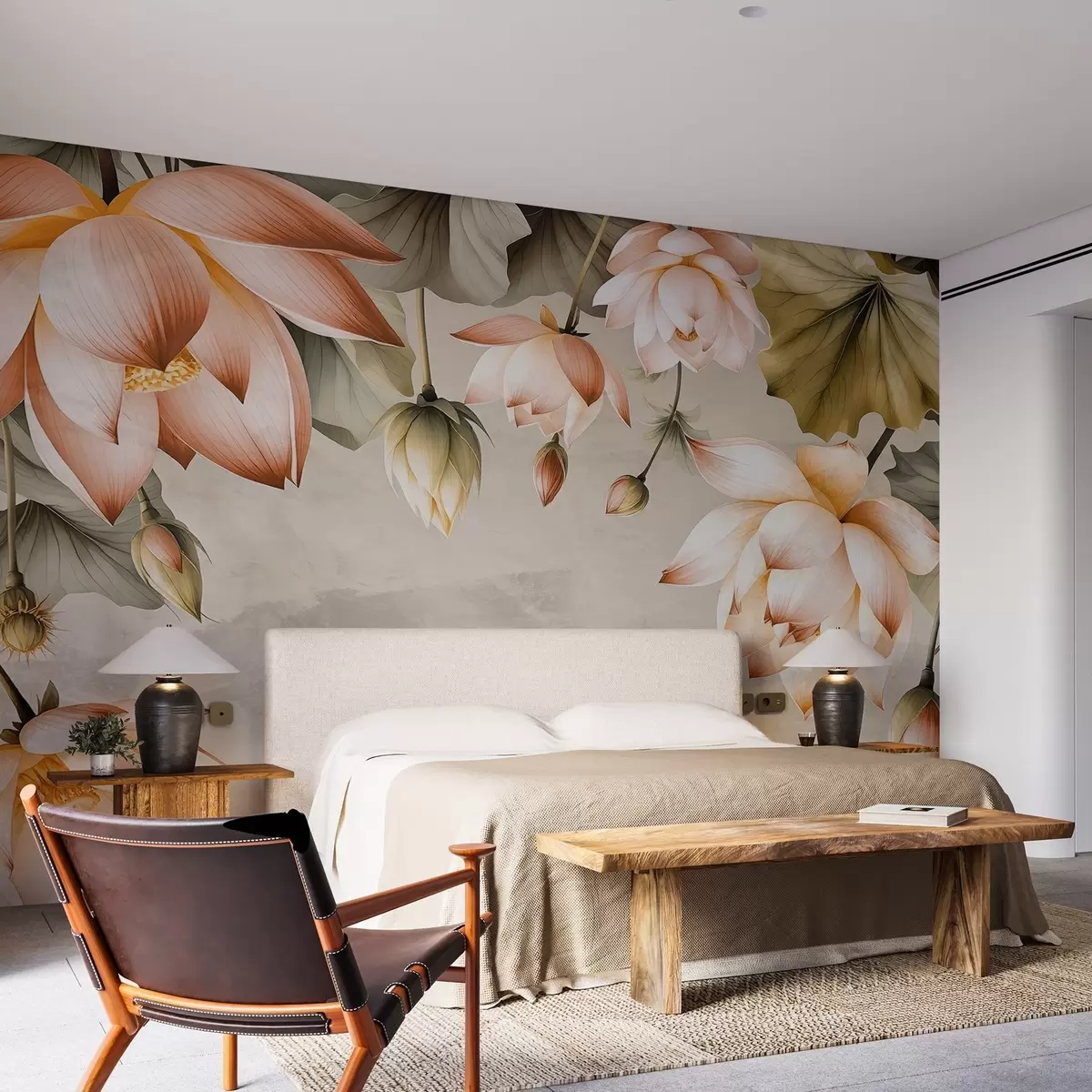 Fototapet Frodig bukett av lotusblommor hängande från ovan Nr. w03340