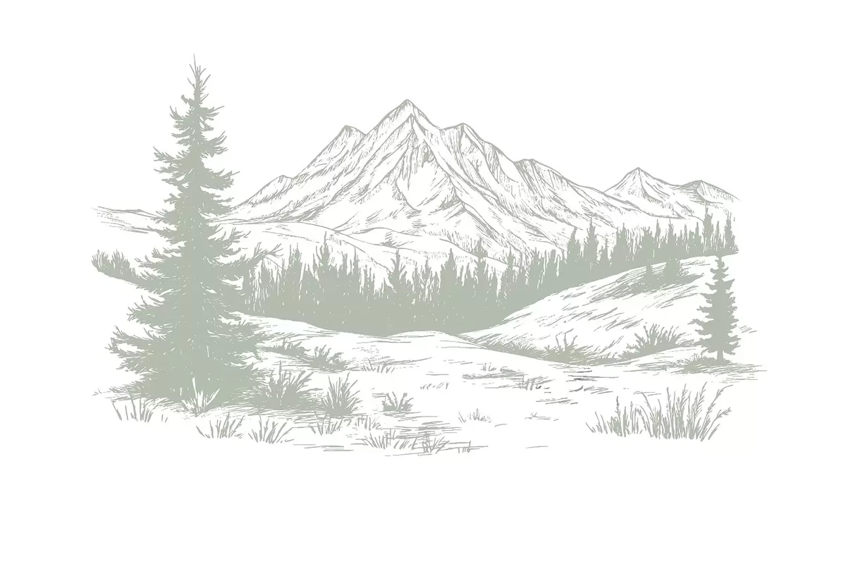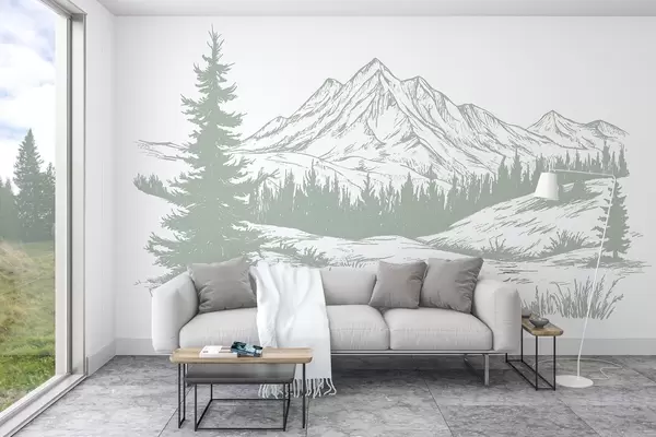 Fototapet Bergslandskap med tallar, skog, natur, mjuk grön färg Nr. w03344v1