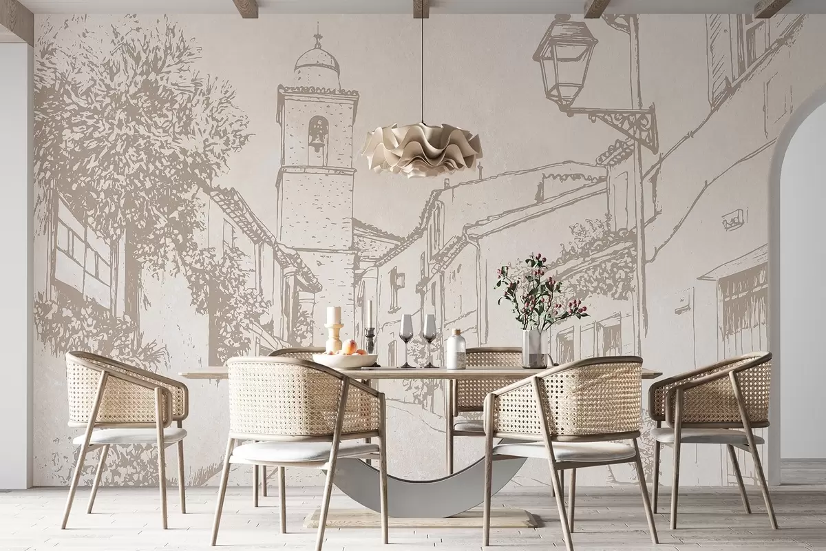 Fototapet Stadsgata, vacker arkitektur, byggnader, Medelhavet, beige färger Nr. w03346
