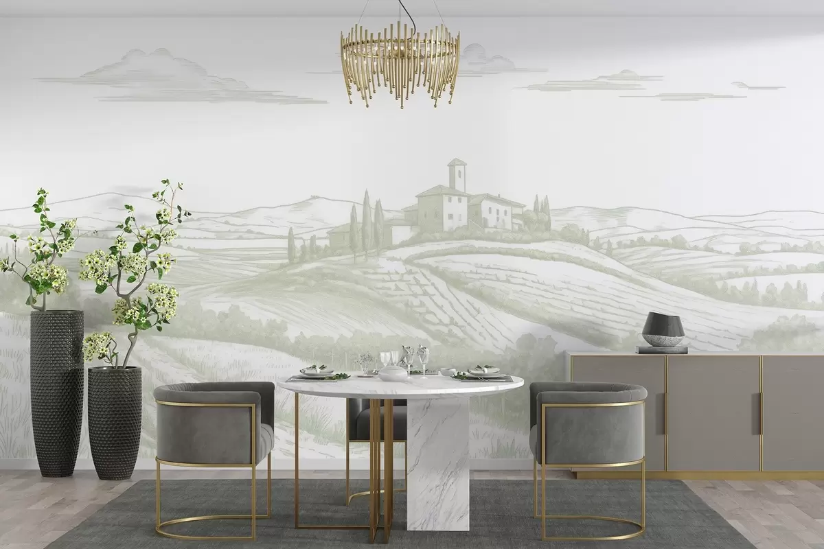 Fototapet Toscana landskap, Italien, vingårdar, natur, gammalt slott, gröna färger Nr. w03349v2