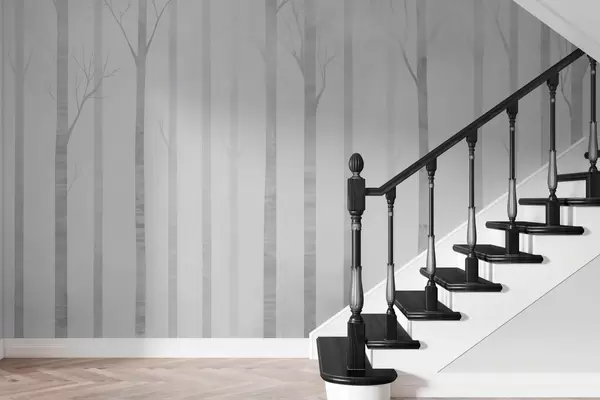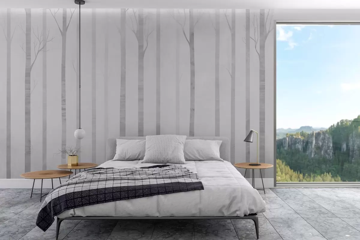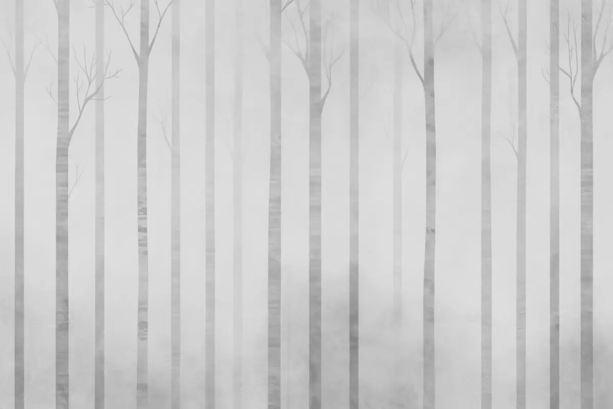 Fototapet Trädstammar i dimman i gråskala Nr. w03386