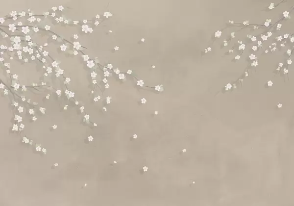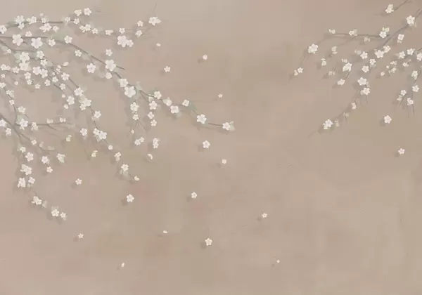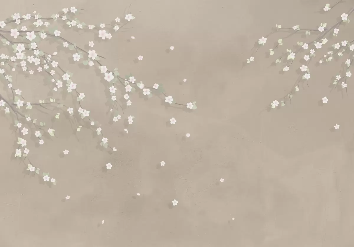 Fototapet Blommande gren på bakgrunden av en grungevägg i beige färg Nr. w03393v2