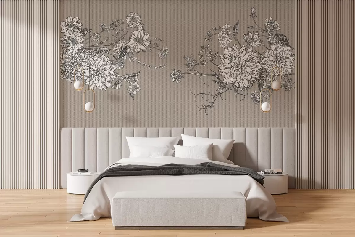 Fototapet Grafiska blommor på en matt bakgrund i beige toner Nr. w03395