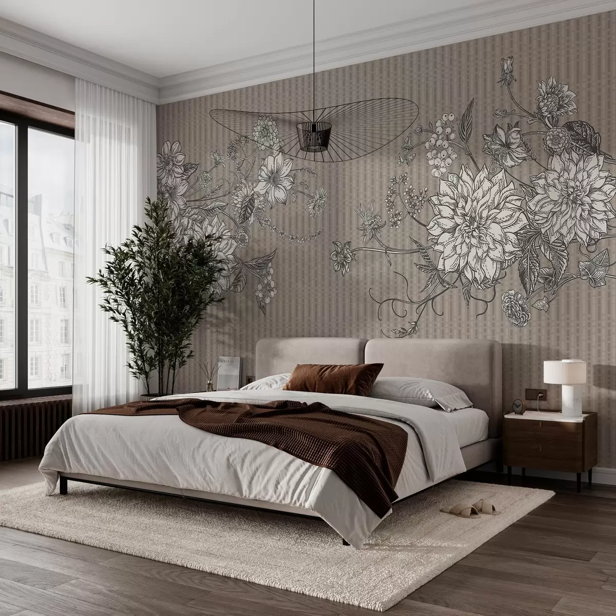 Fototapet Grafiska blommor på en matt bakgrund i beige toner Nr. w03395