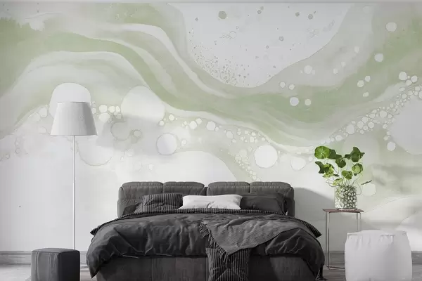 Fototapet Abstraktionsritning i akvarellstil, flytande konst, grön färg Nr. w03403v2