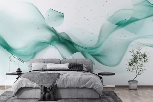 Fototapet Geometriska vågor abstraktion, suddig stil, gradient, akvamarinfärger Nr. w03404v2