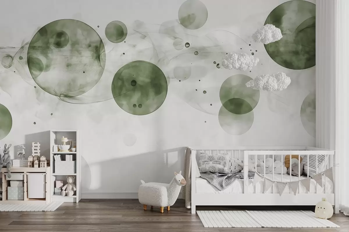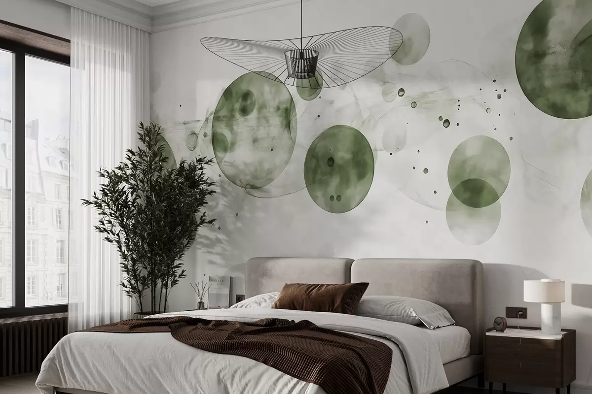 Fototapet Cirklar i akvarellstil, abstraktion, eterisk, flytande konst, gröna färger Nr. w03405v1