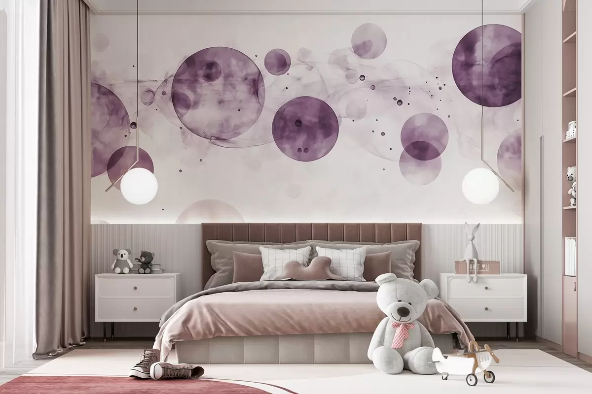 Fototapet Cirklar i akvarellstil, abstraktion, eterisk, flytande konst, lila färger Nr. w03405v2