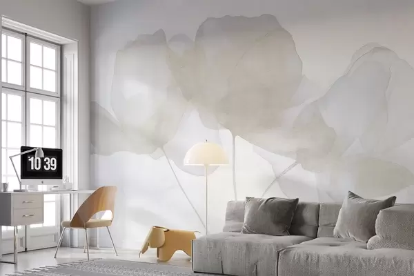 Fototapet Vackra blommor, mjuka pasteller, minimalism, naturligt, rustikt, beige och blått Nr. w03407v2