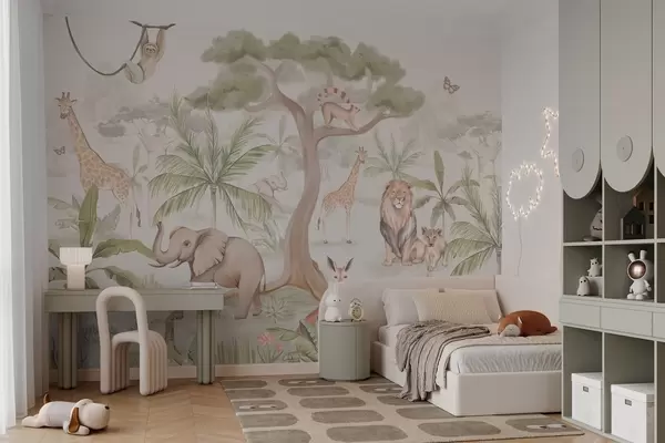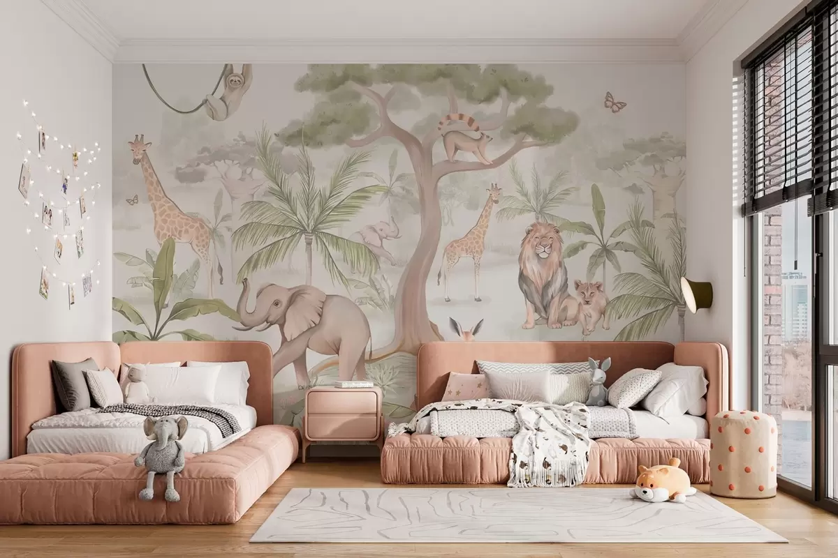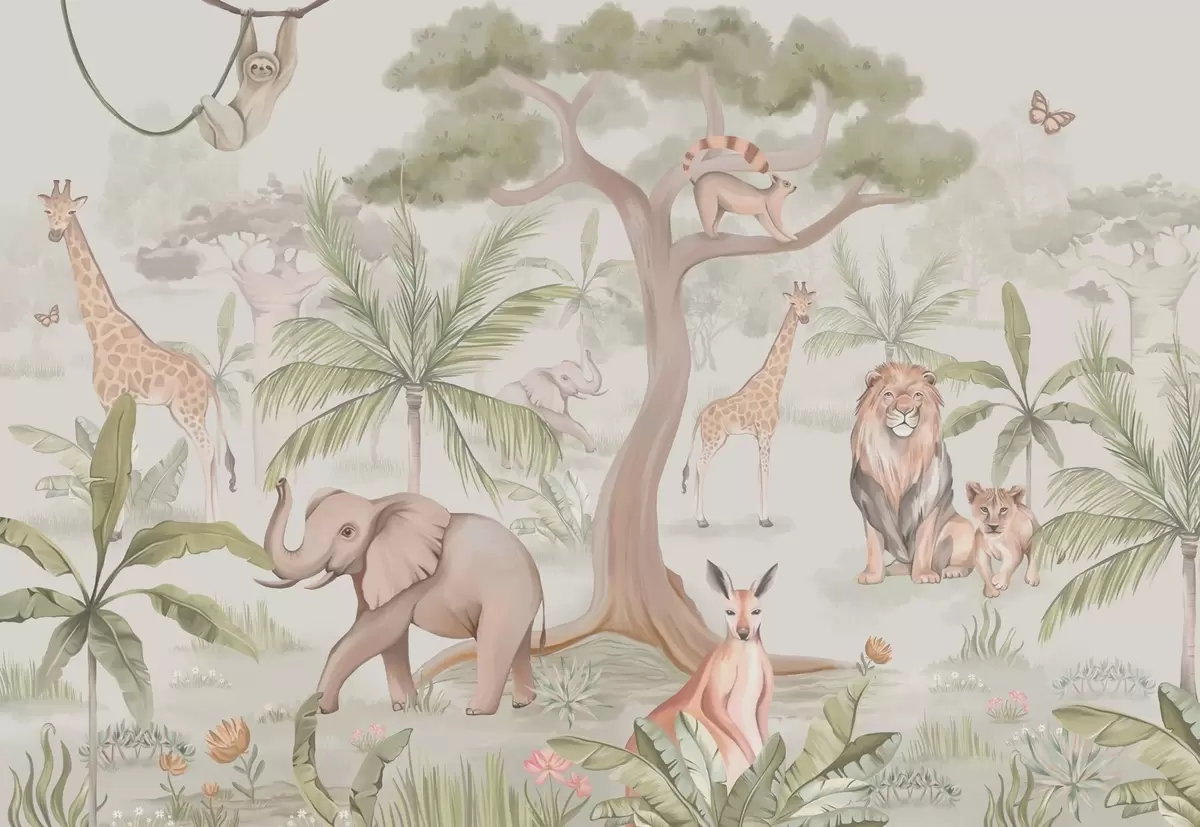 Fototapet Panorama över djungeln med djur Nr. w03444