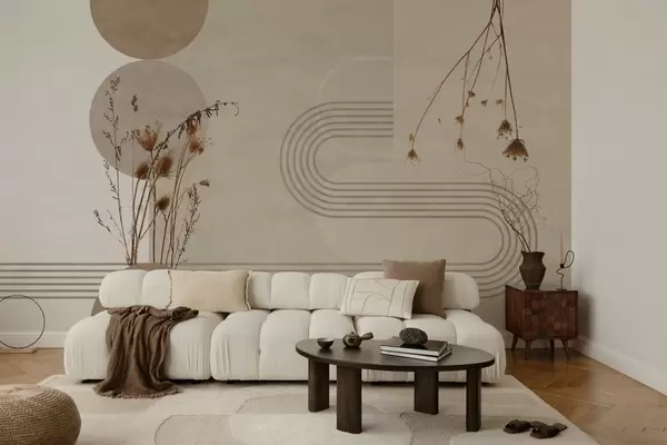 Fototapet snygg geometri och torkade blommor i beige toner Nr. w03449