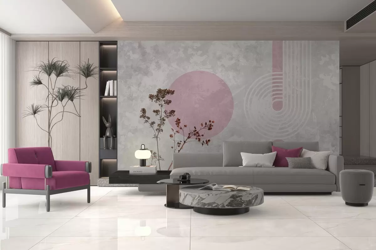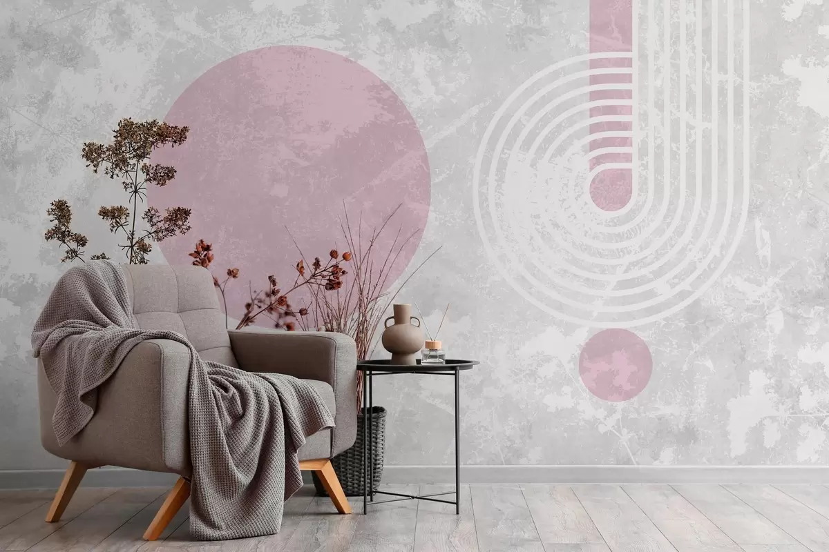 Fototapet grunge modern geometri med torkade blommor Nr. w03459