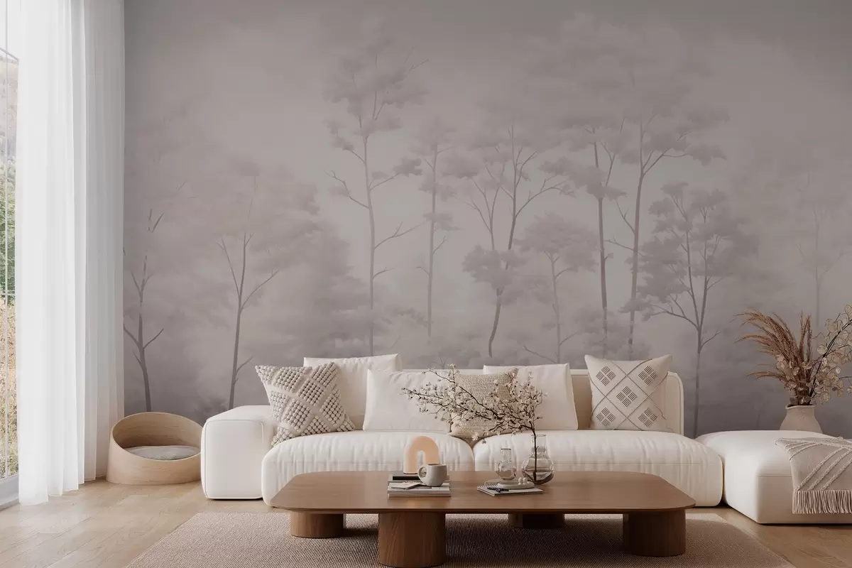 Fototapet Trendig skog i fina ljusa pastellfärger w03525