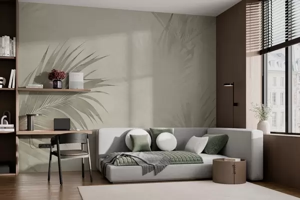Fototapet Tropiska gröna blad i dimma i grungestil w03534v1