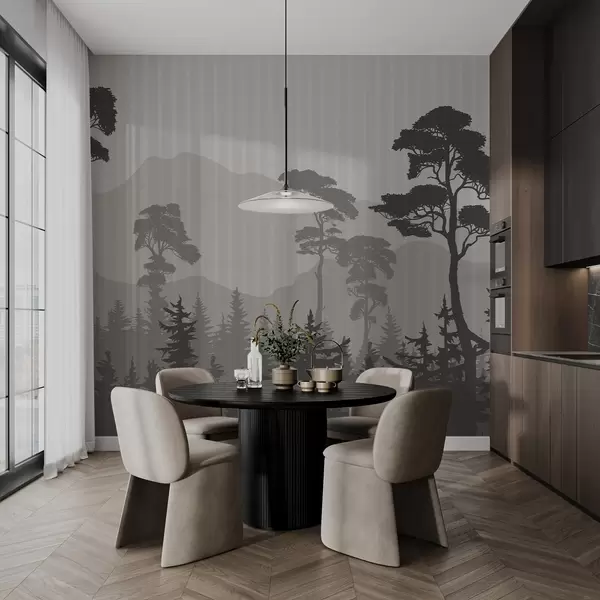 Fototapet Bergsskog i dimmigt dis Nr. w03538v1