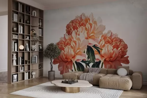 Fototapet Stora orangefärgade blommor Nr. w03545