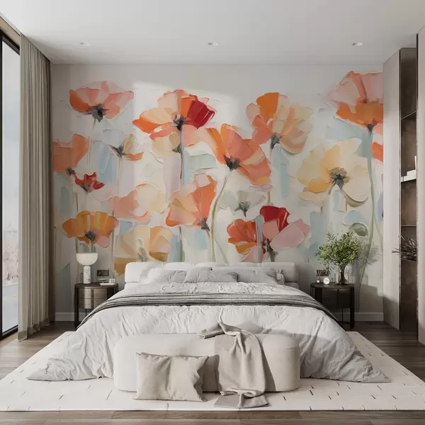 Fototapet Abstrakta blommor i oljemålningsstil med stora penseldrag Nr. w03577