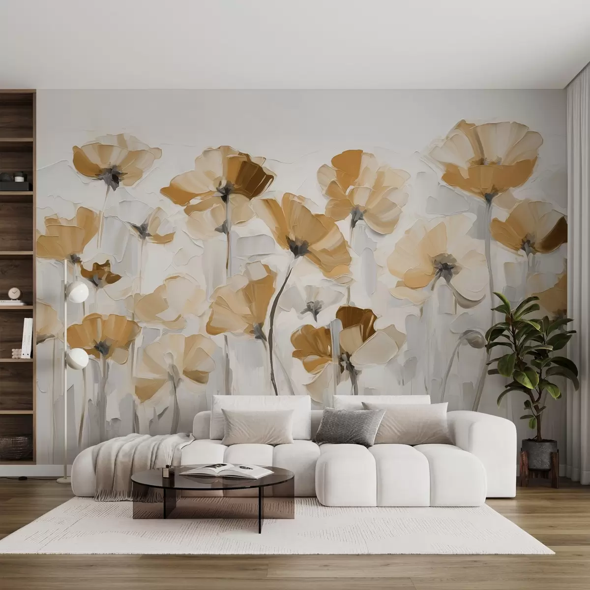 Fototapet Abstrakta blommor i oljemålningsstil med stora penseldrag Nr. w03577v1