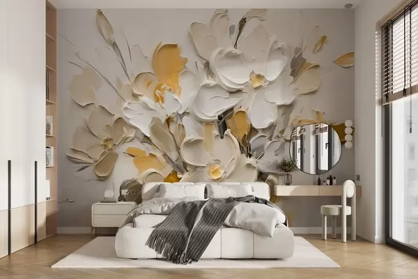 Fototapet Abstrakta volymetriska blommor i oljemålningsstil Nr. w03582v2