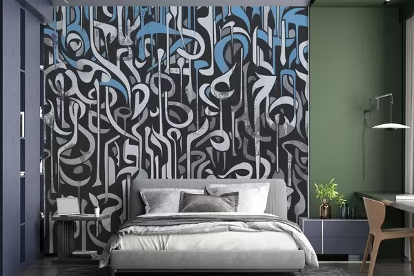 Fototapet Gatukonstdesign med blått och grått Nr. w03607v1