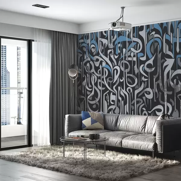 Fototapet Gatukonstdesign med blått och grått w03607v1