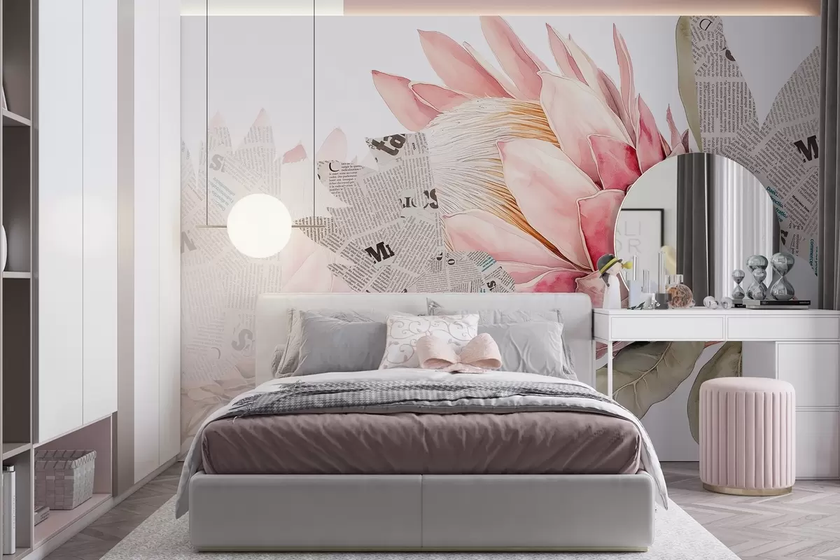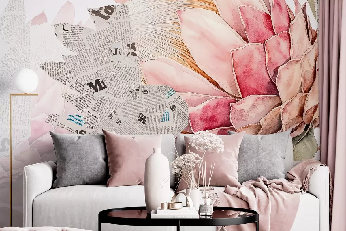 Fototapet Protea blommor, tidningskonst, blommigt, tropiskt, naturliga färger Nr. w03667