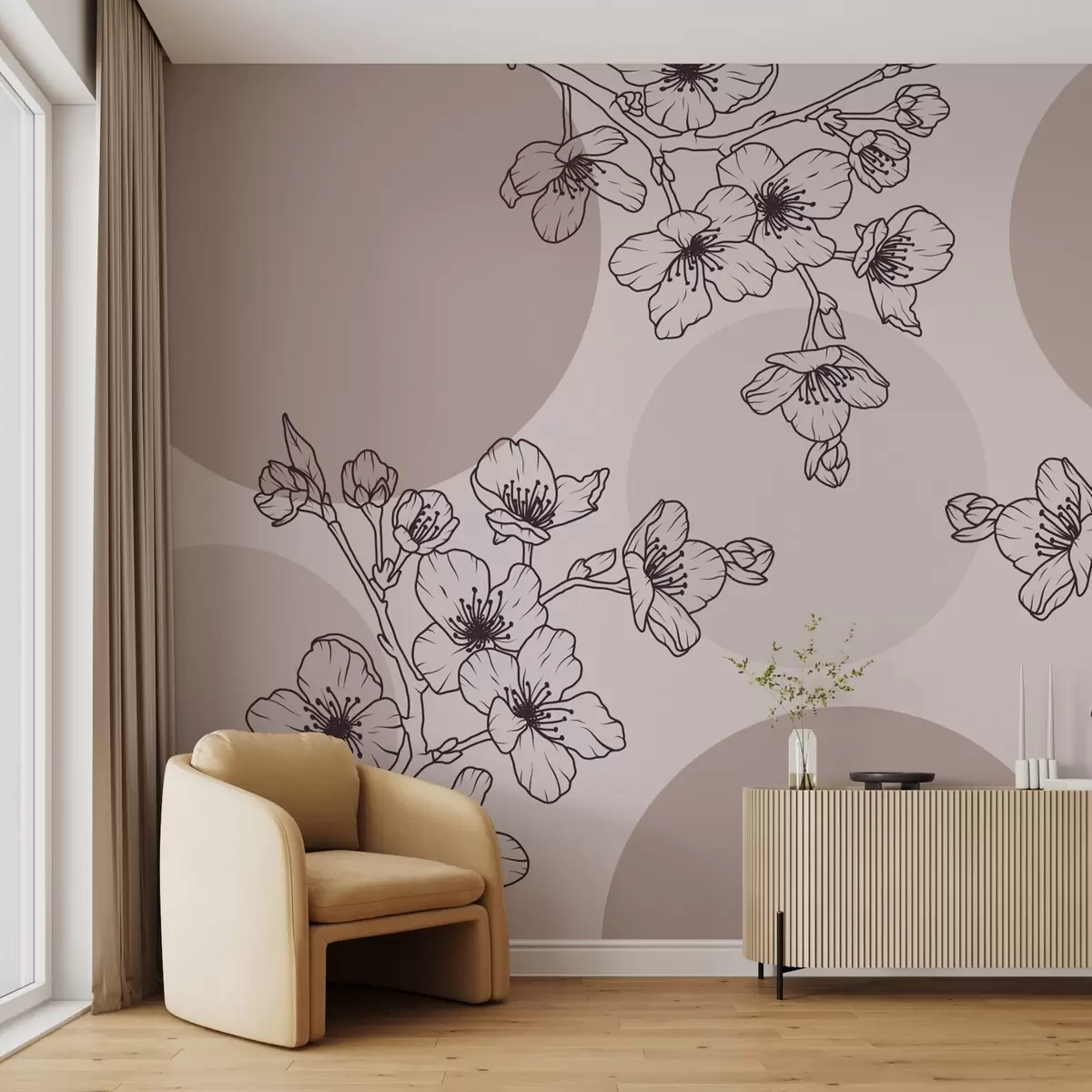 Fototapet Grenar med blommor på färgade cirklar i bruna toner Nr. w03712